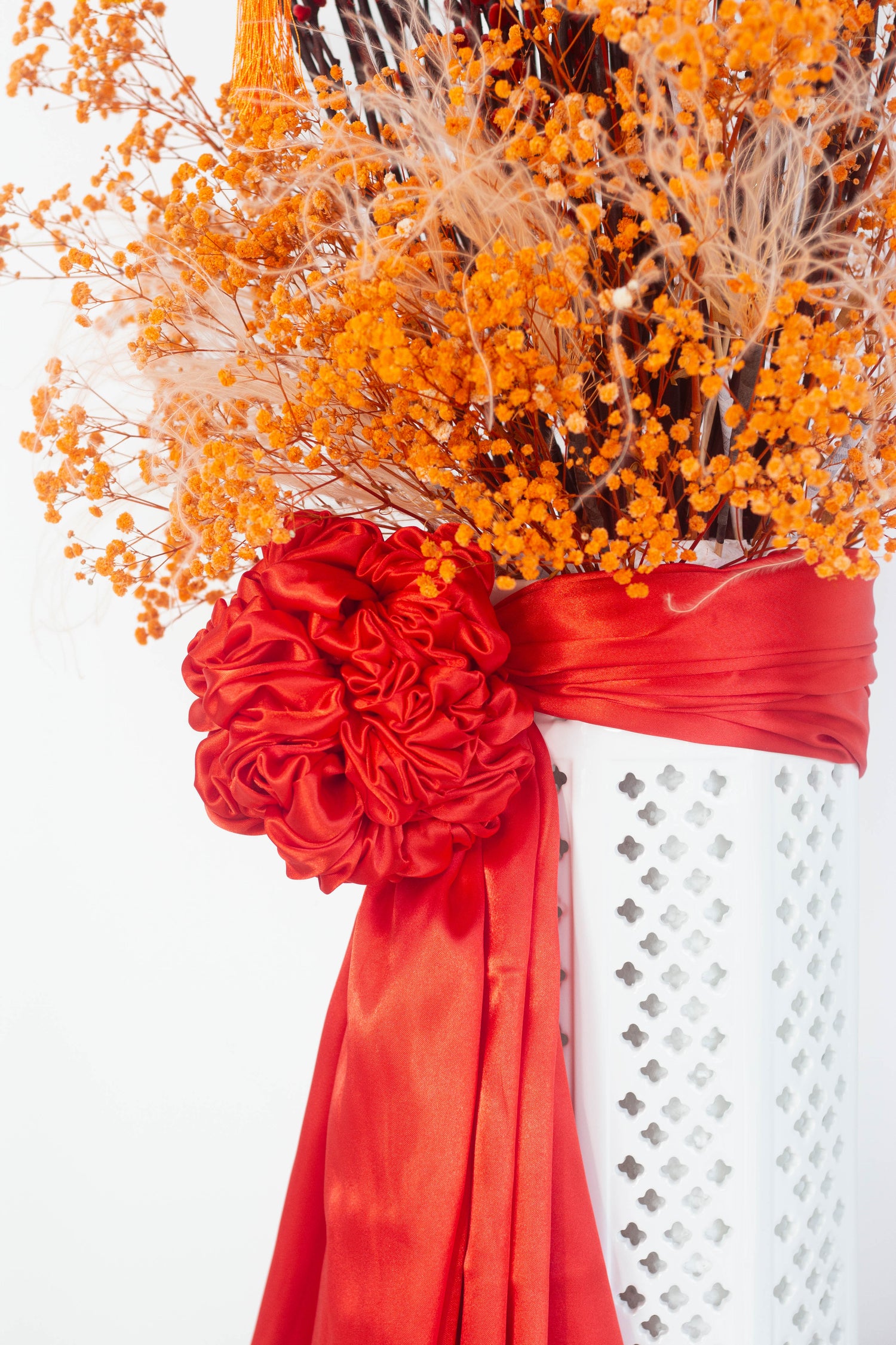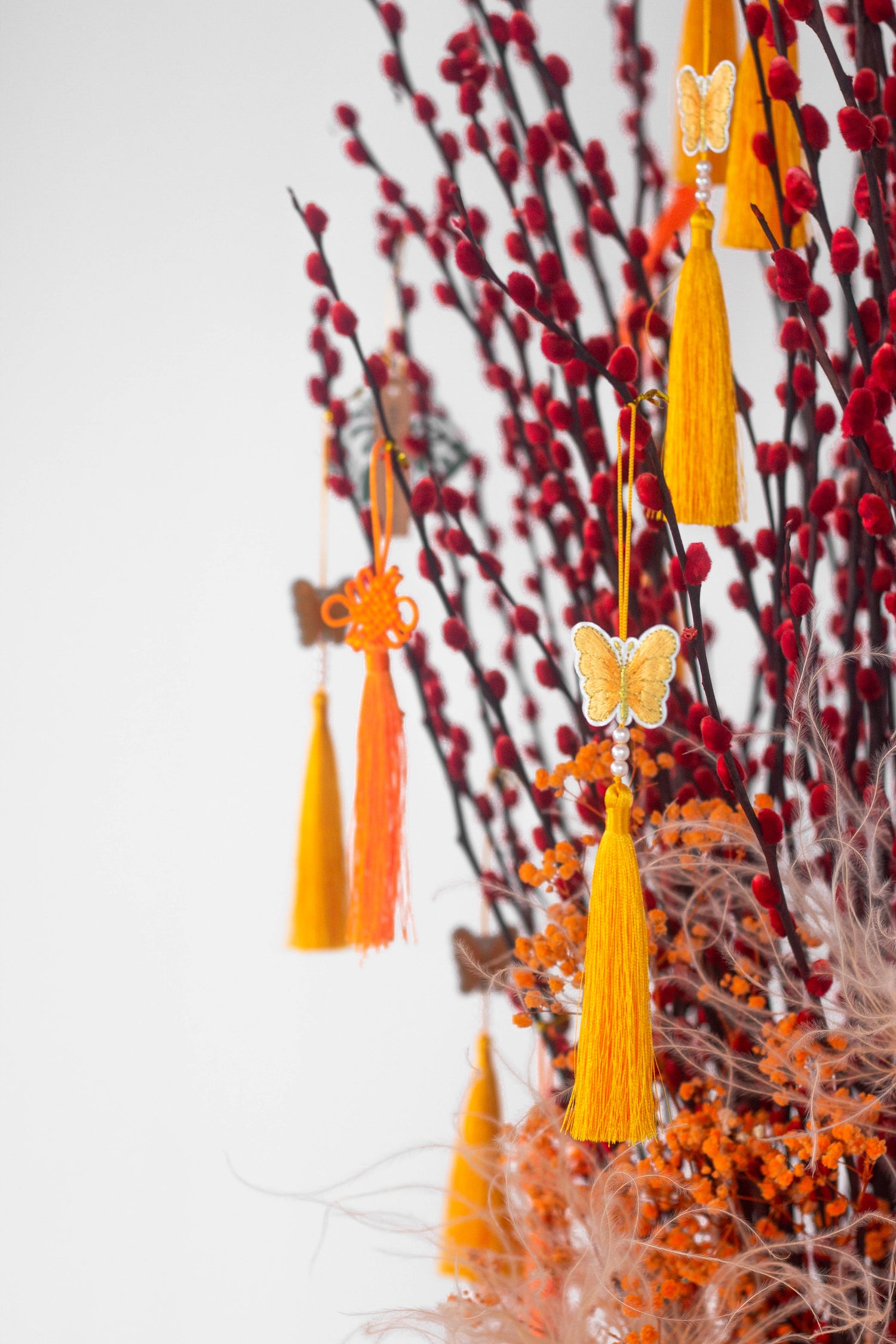 This year’s signature Grand Luxe Willow is a celebration of abundance in its most refined form. Featuring an opulent display of willow branches—revered in Chinese tradition as a symbol of renewal, prosperity, and new beginnings—the arrangement rises with confidence and grace. Adorned with auspicious orange accents and golden details, each branch is thoughtfully styled to evoke upward growth, success, and enduring good fortune.