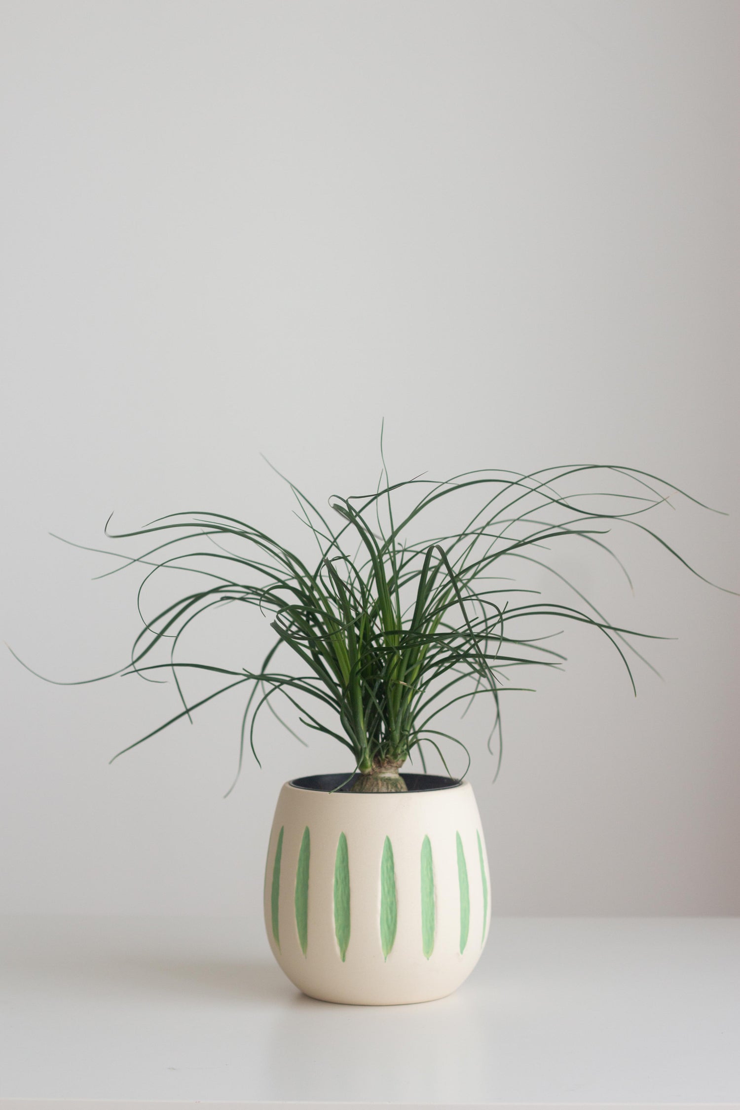 Paired with the Patras planter with a unique and sleek design, the pair creates a harmonious fusion of elegance and modernity. With the Ponytail Palm's low-maintenance requirements, you can enjoy the captivating presence of this unique plant without the need for constant care, making it a perfect addition to your space.
