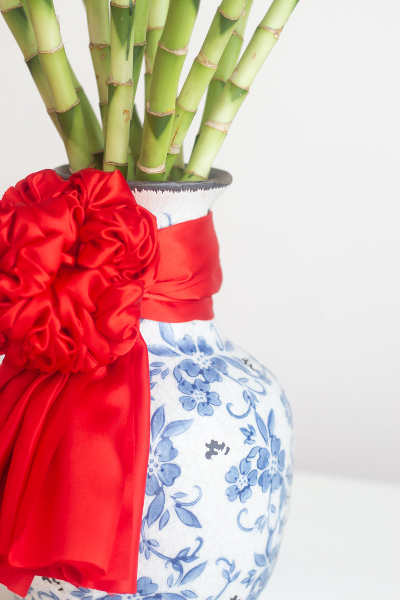An alluring centrepiece with the symbolic Lucky Bamboo in premium ceramic vase, ribbons included